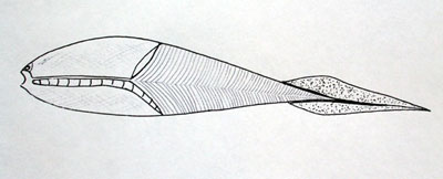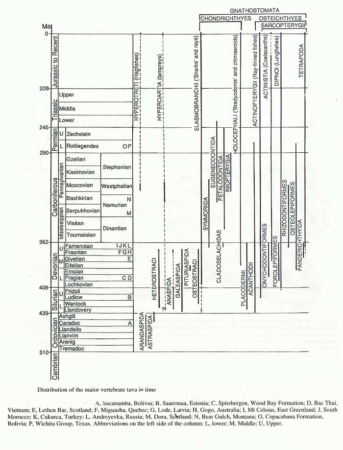 and Arandaspis from Australia. These jawless fish have a bony fusiform head and a tail covered with rod-like