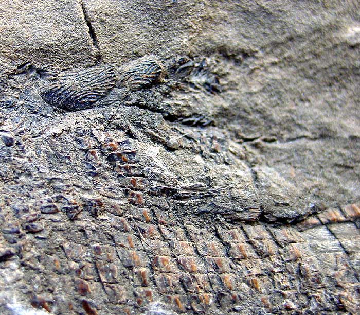 ACTINOPTERYGII While the actinopterygians is the largest and most diverse of the modern fish, they only gained this diversity in the Jurassic. Fragmentary remains are first seen in the late Silurian but the first complete fossils belonging to the geuns Cheirolepis are seen in the Mid Devonian of Scotland. Cheirolepis is atypical of this group having tiny ganoin-covered scales and lacking the acrodine cap on its teeth, however, it has many other actinopterygian features such as a single dorsal fin and large maxilla. The large size, slender body shape and wide gape suggest Cheirolepis must have been a predator however it is the only Devonian form that is not marine(being found in the the Old Red Sandstone of Scotland and Miguasha Actinopterygians in my collection